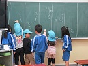 ![]() ←携帯電話・スマートホンからもご覧いただけます 大鷲地区には梨やブドウの畑・水田が多くあり,自然の恵みをいっぱいに受けた大鷲っ子が,毎日元気よく活動しています。 ![]() 今日の2時間目に、大鷲保育園年長組の皆さんが、1年生の授業を見に学校へ来てくれました。子どもたちの様子を見に行くと、1年生が一人一人の園児の皆さんの名前を黒板に書いているところでした。園児の皆さんはそれを真似しながら、自分の名前を黒板に書きました。とても上手に書くことができました。 そのあと、名前を呼ばれたら返事をする練習をしました。1年生の皆さんがお手本を見せた後、1年生が園児の皆さんの名前を呼ぶと、「はいっ!」と元気に返事をすることができました。 そのあとは…20分休みが待っていました!!1年生と園児の皆さんが手をつないで、体育館へと向かいました。とっても楽しいお勉強と休み時間を過ごすことができたようです。 6年生は「新潟市消費生活センター」の皆さんからお越しいただき、「糖分の測定と健康な食生活」について学習をしました。市販の甘い飲み物、チョコレートやりんごなどに、どのくらいの砂糖が入っているのかを測定していました。はかりの上に角砂糖がどんどん積み上げられていき、「そんなに入っているのか?!」と驚きました。 そのあと、糖分をとりすぎることで、身体にどのような影響があるのかを説明していただいたり、「エシカル消費」について教えていただいたりしました。自分の生活を見直しながら、健康的な生活を送るにはどうしたらよいのかを考える良い機会となりました。センターの皆様、大変ありがとうございました。 ![]() ※明日は就学時健診のため、次回の更新は10日(月)になります。のどの痛みや鼻水などの症状がある子どもたちがいます。みなさん、しっかりと体調を整えて、月曜日は元気に会いましょうね!! 今日の午前中に、1年生は秋を探しに「大鷲地区農村公園」に校外学習に出掛けました。朝は肌寒かったのですが、出掛けた時には日が差し、少し暖かく感じました。 公園のイチョウの木は黄色い葉を付け、足元は赤や黄色、茶色の枯れ葉で敷き詰められ、歩くたびにカサカサと心地よい音がします。日差しに誘われて、トンボやチョウチョも飛んでいました。子どもたちはたくさんの秋を見付けることができたようです。 秋探しの後は、公園の遊具で遊びました。「久しぶりだあ」と言いながら、ブランコを高く高くこいでいる子、滑り台をする子、シーソーをする子…。秋の青空の下、秋探しをたっぷり楽しんだ1年生でした。 ![]() 今日、3年生は大根の間引き菜を炒めて、「ふりかけ」を作りました。大根菜、かつおぶしを油で炒めて、砂糖、しょうゆ、塩昆布で味付けします。家でもためしに塩昆布なしで作ってみたのですが、塩昆布を入れると一段とおいしいのです。 簡単にできて、栄養価も高く、子どもたちはごはんに掛けてパクリ。「おいしい!!」と言いながら、あっという間に食べてしまいました。抜いてしまう間引き菜を、無駄にせず、おいしくいただく方法を学びました。ぜひ、おうちでも試してみてくださいね。 1年生は算数の授業でした。話型を使って解き方を説明していました。とても分かりやすく、上手に説明することができました。5年生の算数では、通分の練習をしていました。「他にはないかな」という先生の言葉に「まだある!」と一斉に手を挙げた瞬間をパチリ。 ![]() 昨日の午後、4年生は白根グレープガーデンさんを訪問し、ル レクチエの収穫をしました。今回の収穫体験は、アルビレックス新潟の皆さんと大鷲小学校の子どもたちとが一緒に、ル レクチエの栽培をお手伝いする農業体験教育「アグリレックス」事業の一環です。 和梨の収穫は体験していましたが、ル レクチエは初めての子どもが多く、落とさないように気を付けながら、楽しく収穫を終えました。その後、追熟や包装の仕方なども詳しく教えていただきました。 アルビレックスの大竹選手内山選手と一緒に収穫するだけでなく、記念写真を撮り、サポーターの皆さんとも交流できたことは、子どもたちにとって貴重な体験となりました。アルビレックスの皆さん、白根グレープガーデンの皆さん、大変ありがとうございました。 さて、今日の2時間目、3年生は畑に肥料をまいていました。畑で育っている大根の間引き菜で、後日、大根菜のふりかけを作り、試食することになっています。総合的な学習での活動も後期に入り、どの学年も体験活動やまとめ、表現活動に一生懸命取り組んでいます。 さて、三連休です。“インフルエンザが流行期に入った”と、県からの発表がありました。「早寝早起き、朝ご飯」にしっかり取り組み、手洗い・うがいなど風邪予防をお願いします。4日に元気に会いましょう! ![]() 朝、子どもたちが「先生、花壇の花、とってもきれいですよね。」と言いました。私も、そう思っていました。毎年、児童玄関前
