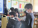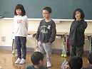 ※さて、週末です。冬休みまで、体調を整えてみんな元気に登校できますように。月曜日、待っています! 4年生の理科を見に行きました。実験から、「金属を温めると体積が増える」ということが分かった子どもたち。この結果から、「開かなくなったビンのふたを開けるにはどうしたらよいか」をみんなで考えているところでした。 グループで話し合っていた時にはいろいろな意見が出ていたのに、「発表してください。」と言うと、し~んとしてしまいました。「あれ?いい意見が出ていたのにな。」と思っていたら、勇気を出して挙手をしてしっかり説明をしてくれたお友達がいました。子どもたちから「なるほど!」という声が聞こえ、私も大きくうなずきました。答えをぜひ、おうちで聞いてみてくださいね!! 5年生は算数で台形の面積を求めていました。答えは同じだけれど、様々な求め方があることが分かったようです。低学年の体育では、縄跳びで「あやとび」の練習をしているところでした。1年生も2年生も、新しい技に一生懸命挑戦をしています。 ![]() 今日は、今年度最後の読み聞かせでした。今日も各学年に、1名ずつ読み聞かせボランティアの皆さんが入ってくださり、本を読んでくださいました。 1年生「手ぶくろを買いに」「おかしなゆき ふしぎなこおり」、2年生「どろぼうがっこう」「おうちにいれちゃだめ」、3年「月刊 たくさんのふしぎ」「あっちゃんのおせち日記」、4年「手ぶくろを買いに」、5年「ともだち」「十二支のはじまり」、6年「マリオンのおつきさま」「またふたりで」を読んでいただきました。 いつもボランティアの皆さんが素晴らしい本を選んでくださり、ぜひ、「うちどく」の参考にしてほしいと思い、今日読んでいただいた図書を紹介しました。1年間、 ![]() 3時間目の授業を見に行きました。6年生は、キャリア教育でゲストティーチャーに来ていただき、「ペット」に関する仕事について教えていただきました。今日の講師先生は「国際ペットワールド専門学校」からお越しいただきました。この仕事に就くことになった理由や仕事の内容、やりがいなどを分かりやすく説明していただきました。 最後には、毛糸玉とペットの毛をすくブラシを貸していただき、ペットの毛をとかす練習をしました。最初はバラバラになっていた毛糸が、優しくとかしているうちにふわふわになり、まるでふわふわの毛になった犬や猫などに触っているような感触でした。愛情をこめて、優しく接することが大切であることがよく分かりました。本日は貴重な経験を聞かせていただきまして、大変ありがとうございました。 1・2年生の体育で、鉄棒の様子を見ていました。地球まわりを練習していました。みんなの前で見せてくれたお友達は、器用に手を組み替え、身体をくるりと回しました。とても上手にできました。子どもたちは、早速、練習を始め、鉄棒から少し体が離れてくるりと回る感じを楽しんでいました。 ![]() 月曜日。全校で風邪症状は見られず、みんな元気に登校できて一安心です。冬休みまで、感染症の流行なく、元気に年末を迎えられたらと願っています。 今日の3時間目に、2年生が1年生の子どもたちを招待する「2年生祭り」が行われていました。どのお店も、とてもよく考えられていて工夫が凝らされ、楽しい出店ばかりでした。 先日、行われた「大鷲っ子祭り」で上の学年の子どもたちの出店をまわっていた子どもたちです。お店の説明もとても分かりやすく、明るく笑顔で教えてくれました。「あと、1回できますよ。」とか、「○点が出ています。頑張って!」など、お店をしている子どもたちと待っている間、話をするのも楽しくて、1年生もずっと笑顔で、楽しく過ごすことができました。「2年生祭り、大成功!」でした。 ![]() 今日は5時間目の授業を見に行きました。 5・6年生は体育でした。鉄棒とマット運動に分かれて練習をしていました。鉄棒は高学年になると、技の範囲も広がってきます。高い鉄棒で手をはなして行う技に挑戦したり、少し低い鉄棒で連続技に挑戦したりする子もいました。 マット運動では、開脚後転の練習に取り組んでいました。足を大きく開くタイミング、両手でマットを強く押すタイミングが合うとうまく着地ができます。そのタイミングを見付けて着地できるように、みんな頑張って練習していました。 1年生の生活科の授業。おうちにはどんなお仕事があるのかをみんなで出し合っていました。「お風呂のそうじ」や「ごはんを作る」「せんたくものをたたむ」など、おうちには様々な仕事があります。もうすぐ冬休み。この休みに、子どもたちはどんなお仕事を分担するでしょうか。冬休みは子どもたちも自分の役割をもち、おうちの仕事をたくさん経験してほしいと思います。 週末です。12月も半ば、寒さも厳しくなってきました。しっかり睡眠をとり、朝食を食べて、月曜日元気に学校に来てください。 ![]() 今日は、様々な学年